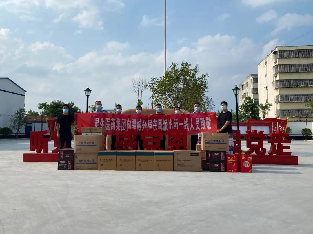 8月19日,駐馬店市靈生醫藥有限公司董事長助理李文豪向駐馬店市驛城分局東風派出所的一線人員送去了口罩、酒精、飲料、方便面、火腿腸等抗疫物資。在疫......